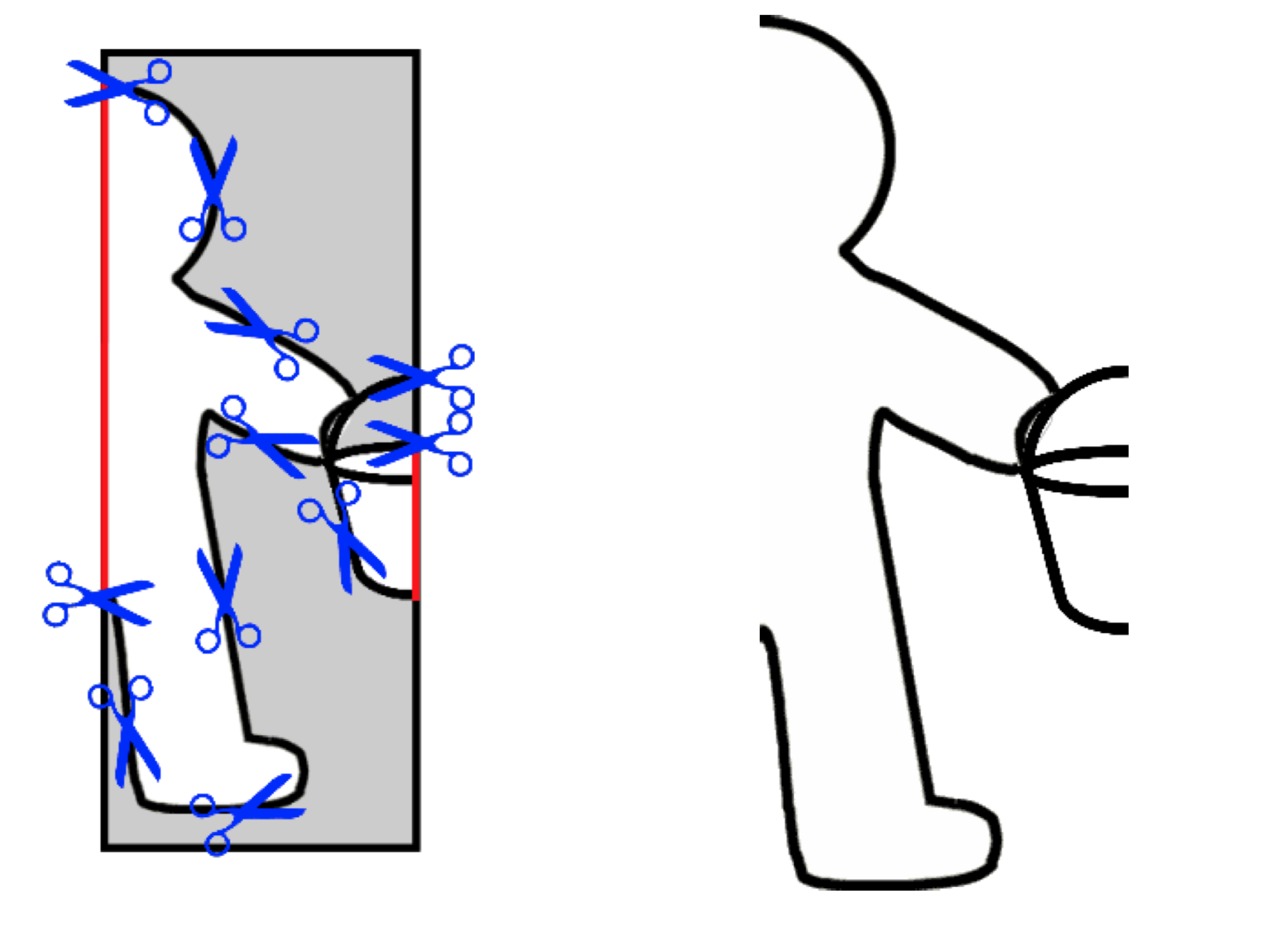 Get your child to carefully cut around the person, making sure not to cut where the bucket meets the folds. Do not cut the joining sections, these are marked in red here. This could be quite difficult for some of the younger children, so offer help if needed.